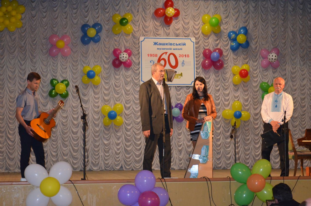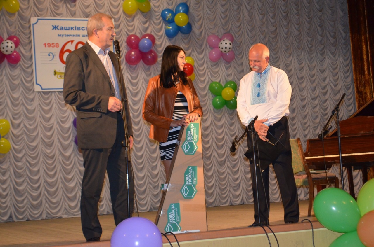 Жашківській музичній школі виповнилося 60 років! Керівник соціальних проектів Благодійного Фонду «Нова Громада» Віктор Григорович Погорілий, завітавши на ювілей, особисто вручив гітару Yamaha вартістю 6137 грн, щоб учні школи мали змогу не просто вчитися, а грати на хороших інструментах. Адже музика та музичне виховання допомагають розвивати у дітей найкращі людські якості!